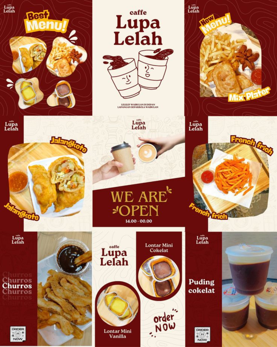 “Desain ini menerapkan strategi konten KulinaRise dengan warna hangat dan visual cozy untuk menonjolkan menu unggulan dan menarik minat pengunjung”