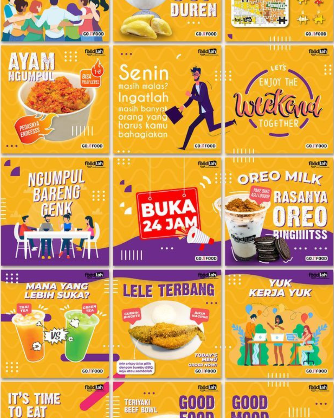 "Untuk feed ini KulinaRise mengoptimalkan layanan campaign promosi kreatif. Warna cerah dan gaya fun dipilih agar sesuai dengan target pasar yang muda dan enerjik"